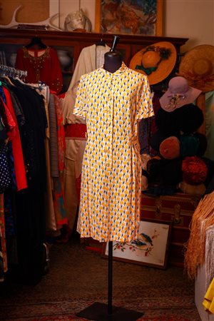 Composto da un abito in jersey floraele nei toni del giallo su fondo bianco e l'altro in cotone a stampa floreale nei toni del giallo e arancione