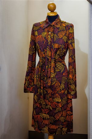 Composto da un abitino in jersey giallo increspato ed un giacchino in cotone nei toni dell'arancione