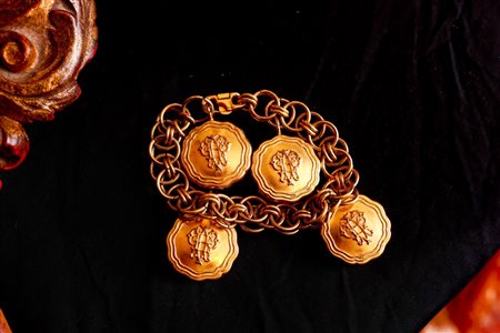 a forma di serpente formato ad piccoli fiori smaltati in beige e rosso e avviluppato ad una catena grumette
