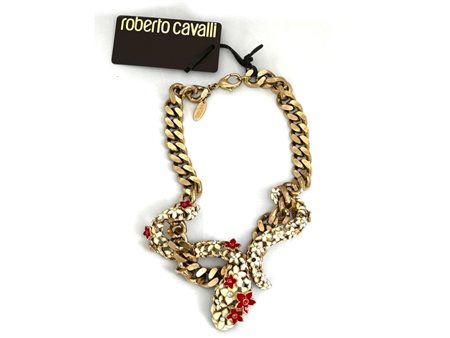 Roberto Cavalli, Collana animalier in metallo dorato e smalti