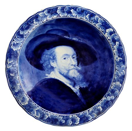 Lotto 5 Koninklijke Porceleyne Fles - Grande piatto blu raffigurante ritratto di Rubens, 20° secolo h cm 7; diametro cm 41 porcellana Fles Dipinto a mano, ottime condizioni.