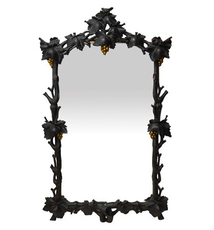 Lotto 14 Specchiera in legno intagliato a foglie di vite con grappoli d'uva dorati, Venice, late 19° secolo Cm 155x95 Presenti rotture ed incollature Presenti rotture ed incollature