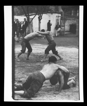 Lotto 16 HENRI-CARTIER BRESSON (Chanteloup-en-Brie, 1908 - Montjustin, 2004). Stampa alla gelatina ai sali d'argento "ISTANBUL, COMPETITION DE LOTTE". Titolo a matita e timbro dell'artista sul retro. 24x17,5 cm su carta 25,5x20,5 cm. HENRI-CARTIER BRESSON (Chanteloup-en-Brie, 1908 - Montjustin, 2004). Silver gelatin print "ISTANBUL, COMPETITION DE LOTTE". Title in pencil and artist's stamp on the back. 24x17.5cm on paper 25.5x20.5cm.