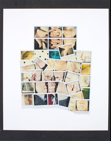 Lotto 20 MAURIZIO GALIMBERTI (Como, 1956). Mosaico di polaroids "BRUNO MUNARI, 1992" incollate su cartone. Firma, titolo e data sulle polaroids. Una polaroid con dedica di Bruno Munari a Maurizio Galimberti. 83x72 cm. MAURIZIO GALIMBERTI (Como, 1956). Mosaic of polaroids "BRUNO MUNARI, 1992" glued on cardboard. Signature, title and date on the polaroids. A polaroid with a dedication from Bruno Munari to Maurizio Galimberti. 83x72 cm
