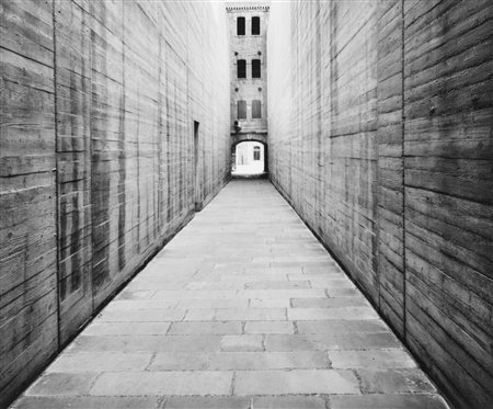 Lo sguardo attento a una composizione che si caratterizza per la sua classicità si ritrova sempre nelle opere del fotografo napoletano Mimmo Jodice, come qua dove indaga sulla struttura della Risiera di San Sabba (l’unico campo di concentramento nazista situato in territorio italiano a Trieste) con una ripresa che proprio nella semplicità trova i motivi della drammaticità.