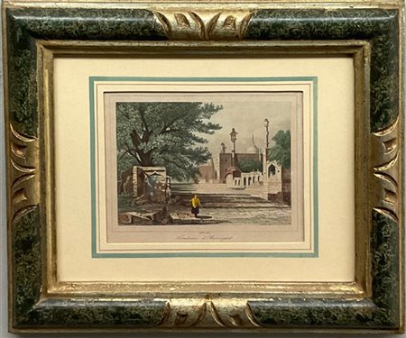 Lotto 1200 Incisione raffigurante veduta di cimitero francese. Entro cornice (cm 30,5x35; incisione cm 15x11)