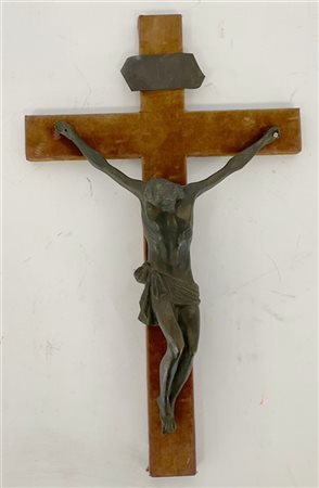 Lotto 1201 Scultore del secolo XIX. Cristo crocifisso, bronzo su croce rivestita in velluto (cm 64x39) (difetti)
