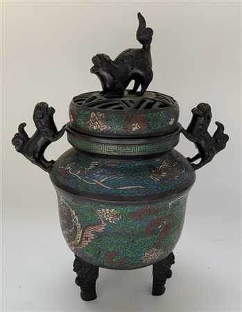Lotto 1202 Incensiere in bronzo e smalto cloisonné.