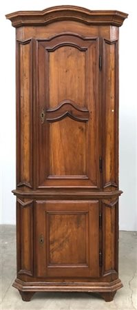 Lotto 1204 Antico cantonale in noce a due ante pannellate e lesene con bordure modanate, cappello mosso (cm 91x237x63) (difetti e restauri)