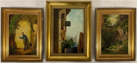 Lotto 1219 Ignoto del XX secolo, da Karl Spitzwerg, Lotto di tre dipinti ad olio su tela, di diverse misure. In cornice (difetti)