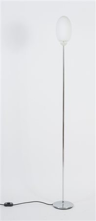Lotto 2 ACHILLE CASTIGLIONI Lampada da terra in acciaio cromato e paralume in vetro satinato modello 'Brera'. Etichetta del produttore. Prod. Flos, Italia, 1990 Cm 178x20x20