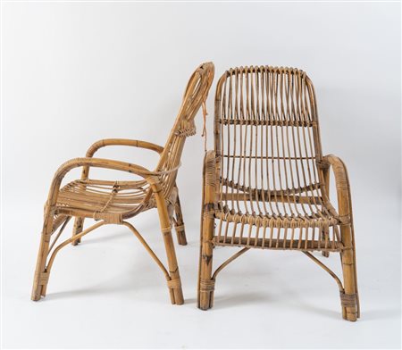 Lotto 6 Coppia di sedie in vimini. Lievi difetti. Prod. Italia, 1970 ca. Cm 100x62x65