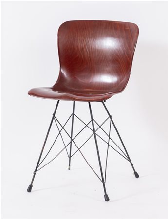 Lotto 8 PAGHOLZ Sedia in legno di faggio e metallo. Marchio originale. Prod. Phagolz, Germania, 1950 ca. Cm 78x45x42.