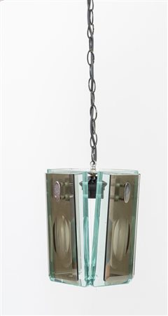 Lotto 10 Lampadario in vetro molato con struttura in metallo. Prod. Italia, 1970 ca. Cm 100x24x24.