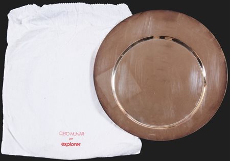 Lotto 12 GIO PONTI Piatto in metallo argentato. Firma incisa del produttore. Prod. Cleto Munari, 1970 ca. Cm 32x32x0,5