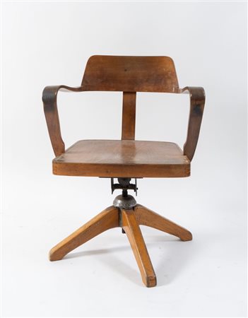 Lotto 13 ANONIMA CASTELLI Sedia girevole in legno e metallo. Marchio orignale. Lievi difetti. Prod. Anonima Castelli, Italia, 1960 ca. Cm 82x59x50