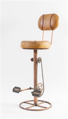 Lotto 18 Sgabello con struttura in metallo e rivestito in ecopelle. Prod. Italia, 2000 ca. Cm 120x46x45