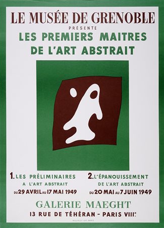Lotto 248 Hans Arp, Les premiers maitres de l'Art Abstrait. Manifesto della mostra presentata dal Musée de Grenoble alla Galerie Maeght. 1949. Litografia. mm 640x467. Meraviglioso manifesto per la mostra tenutasi dal 29 aprile al 7 giugno 1949. (1)