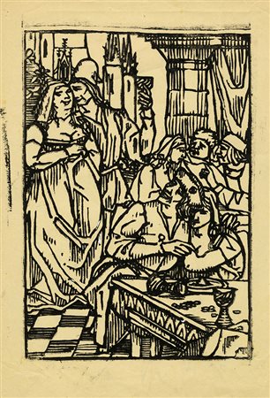Lotto 268 Benvenuto Disertori, Lotto composto di 2 incisioni. 1909-13. 1) Il pensatore. 1909 circa. Xilografia su carta vergellata. mm 117x114. Foglio: mm 295x210. bellini-alberti, 78. Siglata a penna e inchiostro di china in basso a sinistra. Timbro a secco dell'artista in basso a sinistra. 2) La nicchia. 1913 circa. mm 249x161. Foglio: mm 320x230. bellini-alberti, 79. Firmata a penna e inchiostro di china blu in basso a destra. Provenienza: Eredi Disertori. (2)