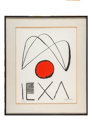 Lotto 253 Alexander Calder, Hommage à Man Ray. 1974. Litografia a colori. mm 495x375. Firma a matita in basso a destra e tiratura a numeri romani in basso a sinistra. Timbro a secco in basso a sinistra. Provenienza: Galleria Gacarù, Milano, di cui è presente l'etichetta al verso. Es. XVIII/XX. (1)