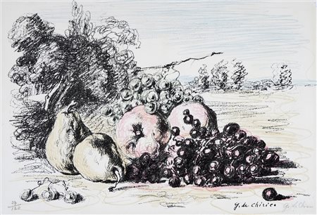 Lotto 260 Giorgio De Chirico, Natura morta. 1964. Litografia. mm 290x420. ciranna, 131. Firma a matita in basso a destra e controfirma in lastra in basso a destra. Edizione in 120 esemplare stampata da Bulla, Roma. (1)