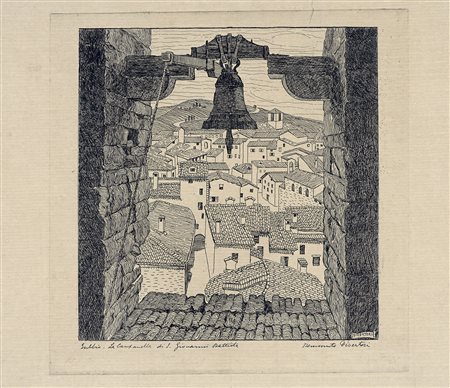 Lotto 270 Benvenuto Disertori, Lotto composto di 2 incisioni. 1912-20. 1) Gubbio. La campanella di S. Giovanni Battista. 1912-13. Acquaforte e bulino su carta vergellata beige. mm 294x290. Foglio: mm 335x438. bellini-alberti, 7. Firma a penna e inchiostro di china in basso a destra, titolo in basso a sinistra e controfirma in lastra in basso a destra. Iscrizione al verso. 2) Perugia. Il campanile di S. Maria Nuova. 1919-20. Acquaforte e bulino su carta vergellata. mm 389x275. Foglio: mm 665x486. bellini-alberti, 39. Firma in lastra in basso a destra. (2)