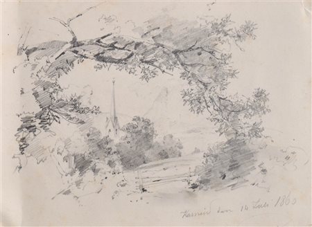 Lotto 201 Karl Vinzenz Moser (Bozen/Bolzano 1819 - 1882) Motivo da Cornedo presso Bolzano, 1860;Matita, 21,3 x 28,5cm