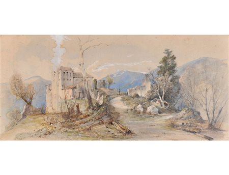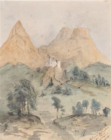 Lotto 210 Josef Malfèr (1831 - 1907) Castello di Rovereto, 1850;Olio su carta su cartone, 19 x 24,3 cm, in