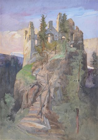 Lotto 207 Tony Grubhofer (Innsbruck 1854 - 1933) Rovine di Castelvecchio presso Siusi allo Scilar;Acquerello, 34 x 23,7 cm, in cornice