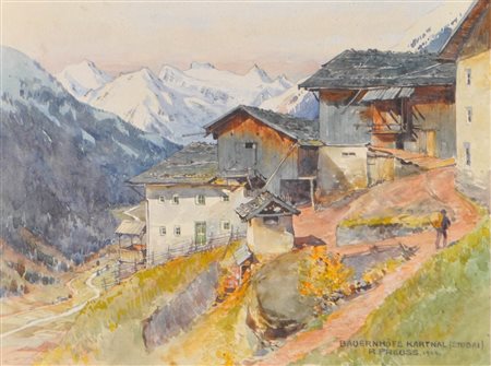 Lotto 212 Rudolf Preuss (Wien/Vienna 1879 - Innsbruck 1961) Masi Kartnal nella Valle Stubaital, 1924;Acquerello, 18 x 24 cm, in cornice