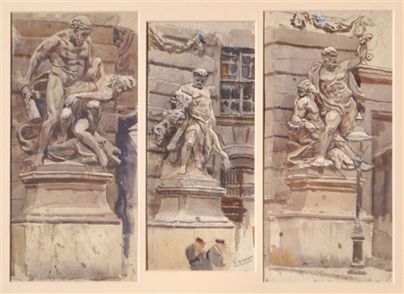 Lotto 213 Ernst Graner (Werdau, Sachsen 1865 - Wien/Vienna 1943) Figure di Ercole al portone Michaelertor a Vienna;3 acquerelli, 28 x 13 cm o 25 x 13 ciascuno,