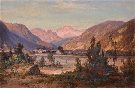 Lotto 214 Edmund von Wörndle (Wien/Vienna 1827 - Innsbruck 1906) Bolzano con il Catinaccio nell’enrosadira delle Alpi;Olio su cartone, 30,5 x 46 cm, in cornice