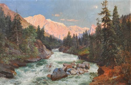 Lotto 219 Georg Holub (Brünn/Brno 1861 - Wien/Vienna 1919) Ruscello nelle Alpi austriache;Olio su tela, 52 x 78,5 cm, in cornice
