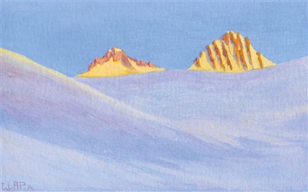 Lotto 222 Engelbert Lap (Graz 1886 - Innsbruck 1970) Gruppo dell’Adamello d‘inverno, 1914;Tempera su carta, 10,8 x 17,5 cm, in cornice