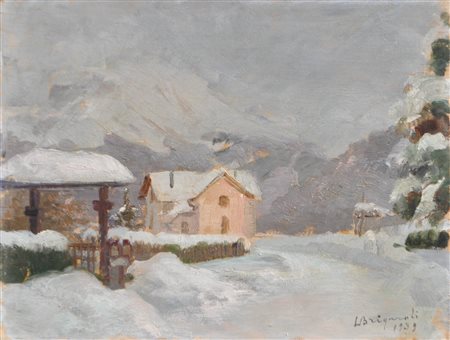 Lotto 223 Luigi Brignoli (Palosco 1881 - Bergamo 1952) Paesaggio alpino in inverno, 1939;Olio su tavola, 32 x 53 cm, in cornice