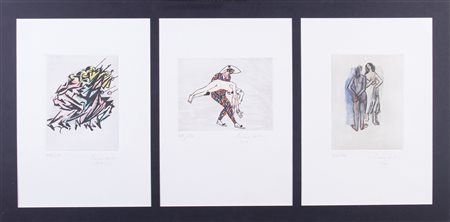 B) Arlecchino, 1915-86, incisione acquatinta e ceramolle a 7 colori, es. 49/130, cm. 18,4x24,4 (lastra), cm. 49x35 (carta). Firma e data a matita sul margine in basso a destra: Primo Conti / 1919, tiratura in basso a sinistra: 49/130;