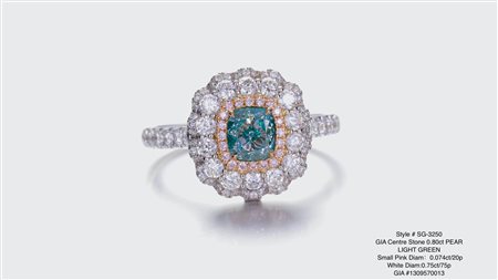Lotto 8 ANELLO IN ORO BIANCO 18K 3.52 GR DIAMANTE CENTRALE VERDE 0.80 CT + BRILLANTI ROSA PER 0.074 CT/20P + BRILLANTI 0.75 CT/75P COLORE D-F PUREZZA VS1 CERTIFICATO GIA - SG-3250
