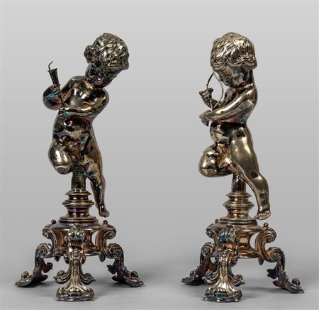 Lotto 0001 Coppia di putti in metallo argentato in stile antico