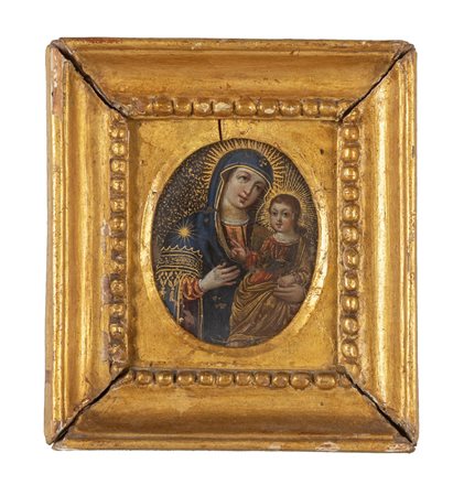 Lotto 0002 Scuola veneta sec.XVIII 'Madonna con Bambino' olio su rame cornice coeva
