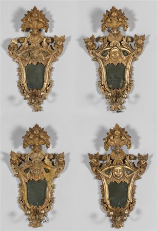 Lotto 0005 Quattro specchierine Luigi XIV in legno intagliato e dorato Piemonte II metà sec.XVIII