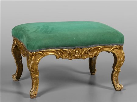 Lotto 0006 Sgabello poggiapiedi Luigi XV in legno intagliato e dorato Piemonte metà sec.XVIII