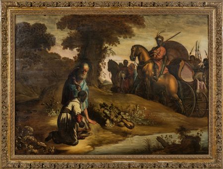 Lotto 0008 Scuola fiamminga sec.XVII 'Scena Biblica' olio su tavola