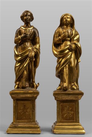 Lotto 0013 Due sculture in legno dorato poggianti su basi coeve Toscana sec.XVIII