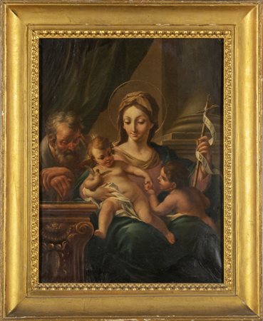 Lotto 0014 Scuola genovese sec.XVII 'Sacra Famiglia con San Giovannino' olio cornice in legno intagliato e dorato sec.XIX