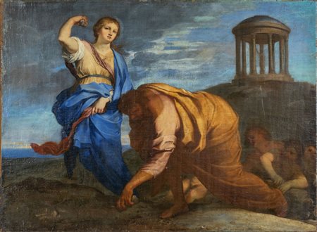 Lotto 0016 Scuola romana sec.XVII 'Lapidazione' olio