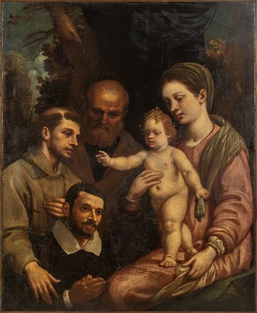 Lotto 0018 Scuola italiana sec.XVII 'Sacra Famiglia con Santo e figura del donatore' olio