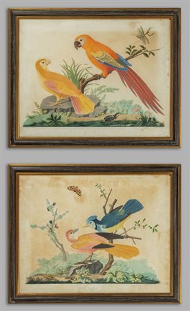 'Volatili' coppia di stampe acquarellate