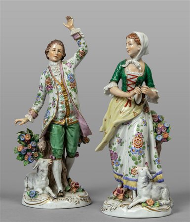 Lotto 0022 Coppia di figure in porcellana policroma di Capodimonte raffiguranti gentiluomo e gentildonna