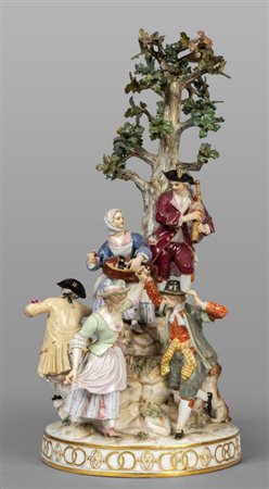 Lotto 0023 Gruppo in porcellana di Meissen policroma raffigurante festa paesana con orchestrina sec.XIX