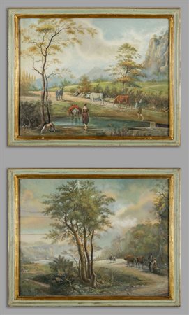 Lotto 0998 Scuola italiana sec.XIX 'Paesaggi con figure' coppia di tempere